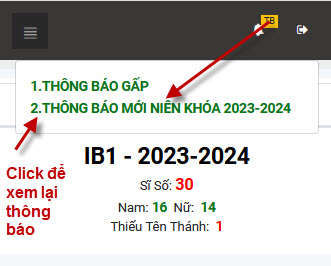 - Nếu muốn xem lại bạn click vào biểu tượng TB (load 3 thông báo gần nhất).