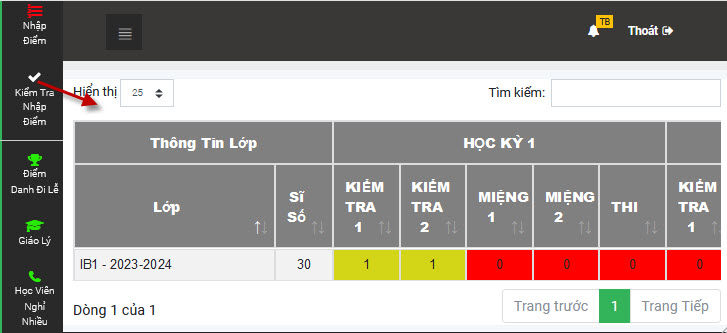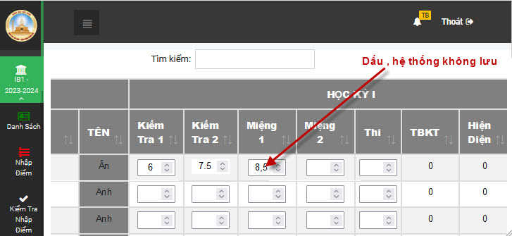- Chức năng này giúp bạn kiểm tra lại việc nhập điểm cũng như hệ thống có lưu đầy đủ kh ông? tương ứng với các cột điểm.