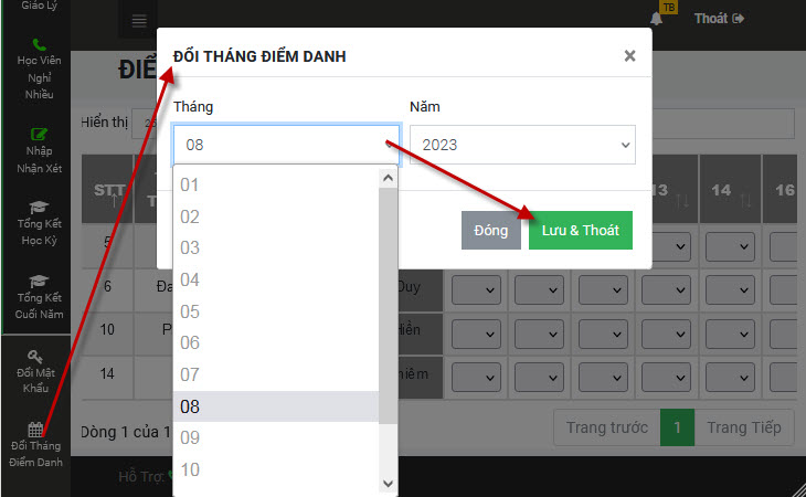 4.1 ĐỔI THÁNG ĐIỂM DANH