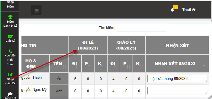 - Bạn nhập nhận xét theo tháng, bạn có thể đổi về tháng trước để nhập.