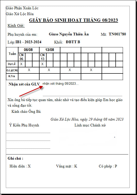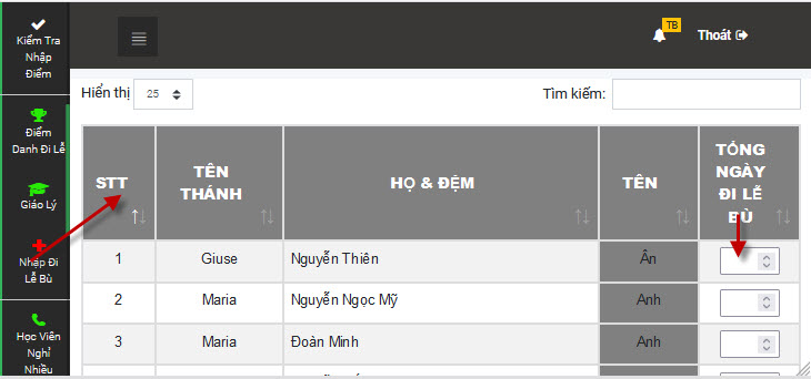 + Giáo Lý Viên (chỉ thấy lớp mình phụ trách)