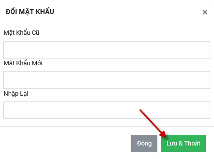 - Bạn nhập mật khẩu hiện tại và 2 lần mật khẩu mới sau đó nhấn Lưu và Thoát
