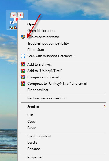 B1. Click chuột phải vào biểu tượng Unikey ngoài màn hình desktop chọn Run as administrator